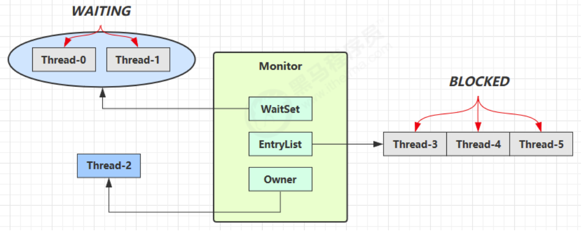 - 然后自己进入 Monitor 的 EntryList 转为阻塞状态