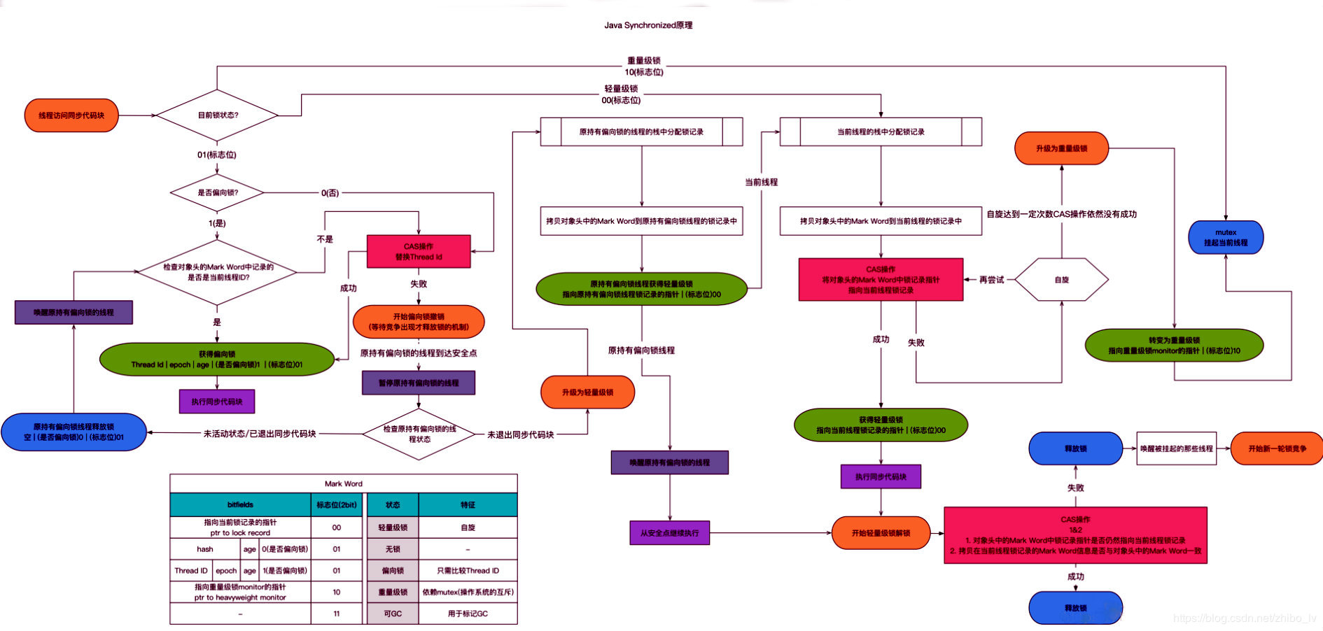 当一个线程执行 synchronized 对某个 object 上锁时,首先会尝试 CAS 交换 Lock Record 地址和该 object 的 Mark Word,如果替换成功,表示由该线程给 object 上了锁。