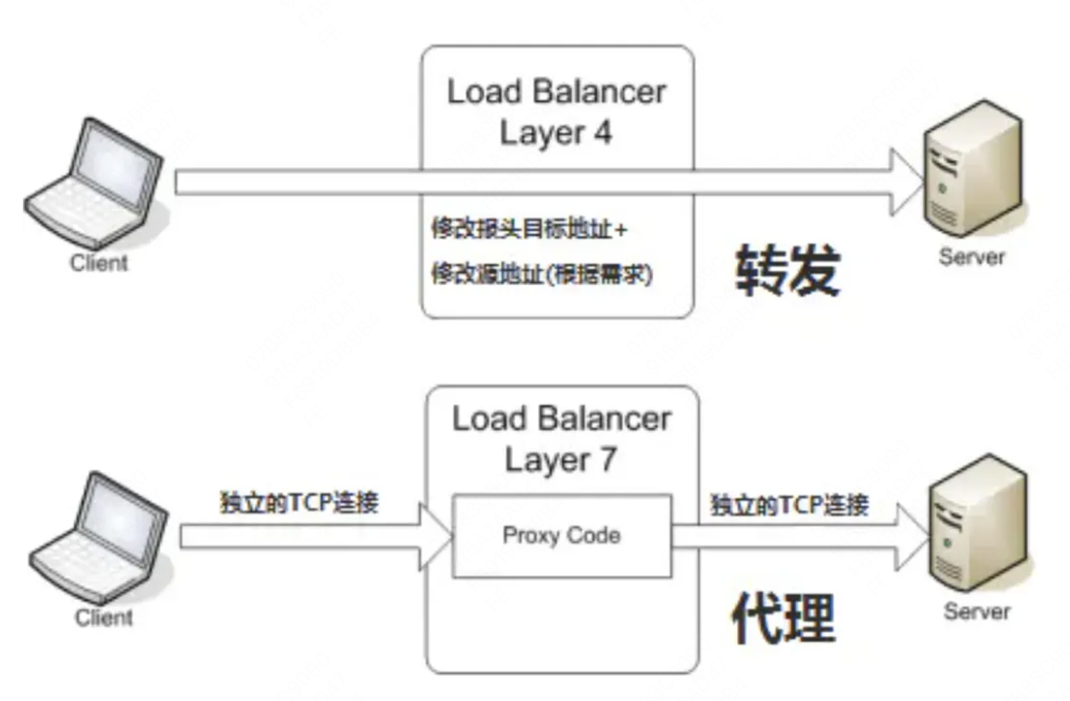负载均衡器分为四层交换机、七层交换机。L4 switch工作在OSI的传输层,主要分析IP层及TCP/UDP层,实现四层流量负载均衡,不关心应用协议,例如LVS,F5等。L7 switch工作在OSI的应用层,除了支持四层负载均衡以外,还能分析应用层的信息,如HAProxy,MySQL Proxy等。