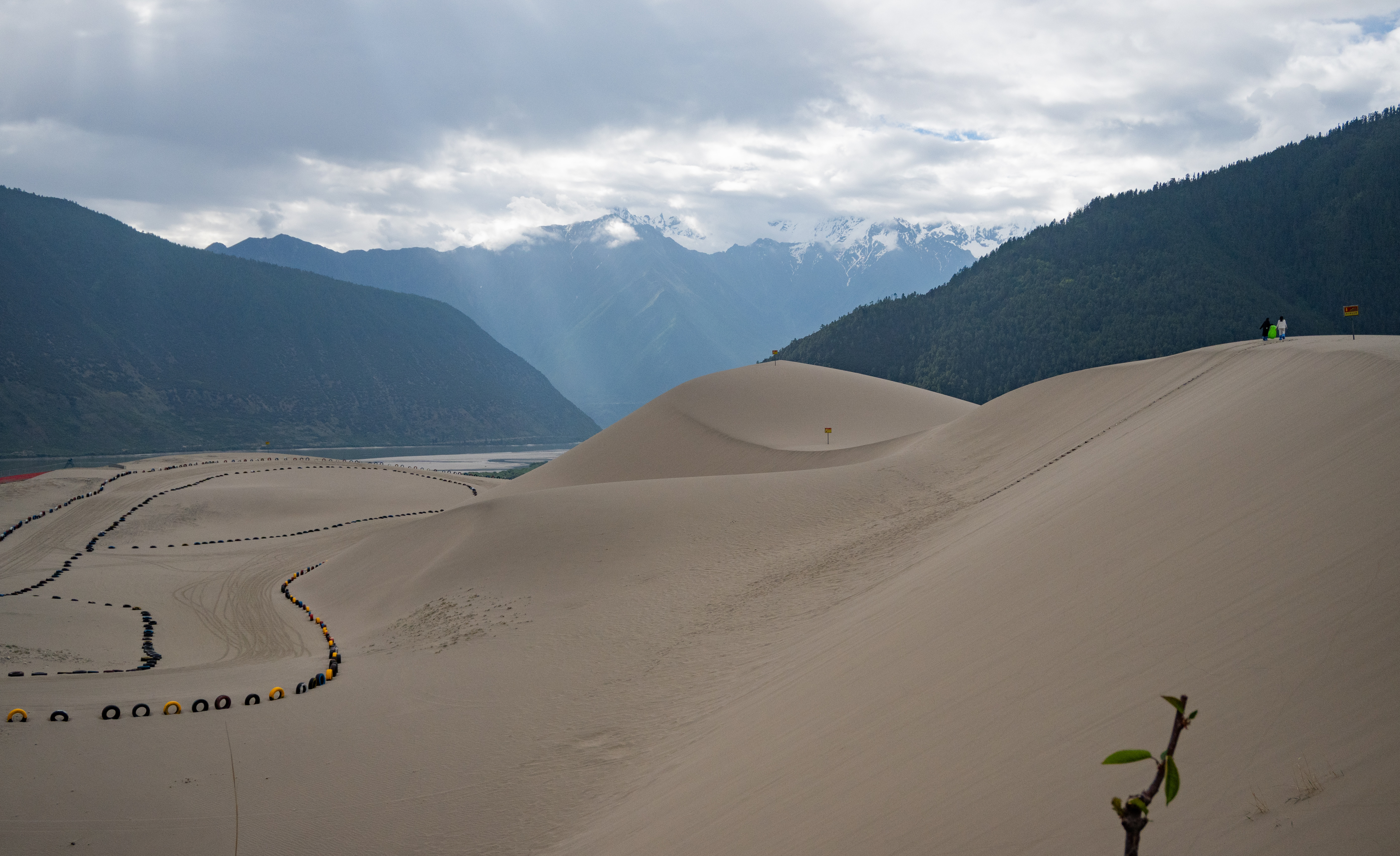 早餐是稀饭、馒头、咸菜,跟团的6天每天早晨都是这三样…出雅鲁藏布大峡谷的路上,近观了昨天路过的丹娘佛掌沙丘,也是个小景点,可以付费滑沙,但是看着沙丘上的两个小姐姐滑下去又得自己往上爬也是蛮累的。
