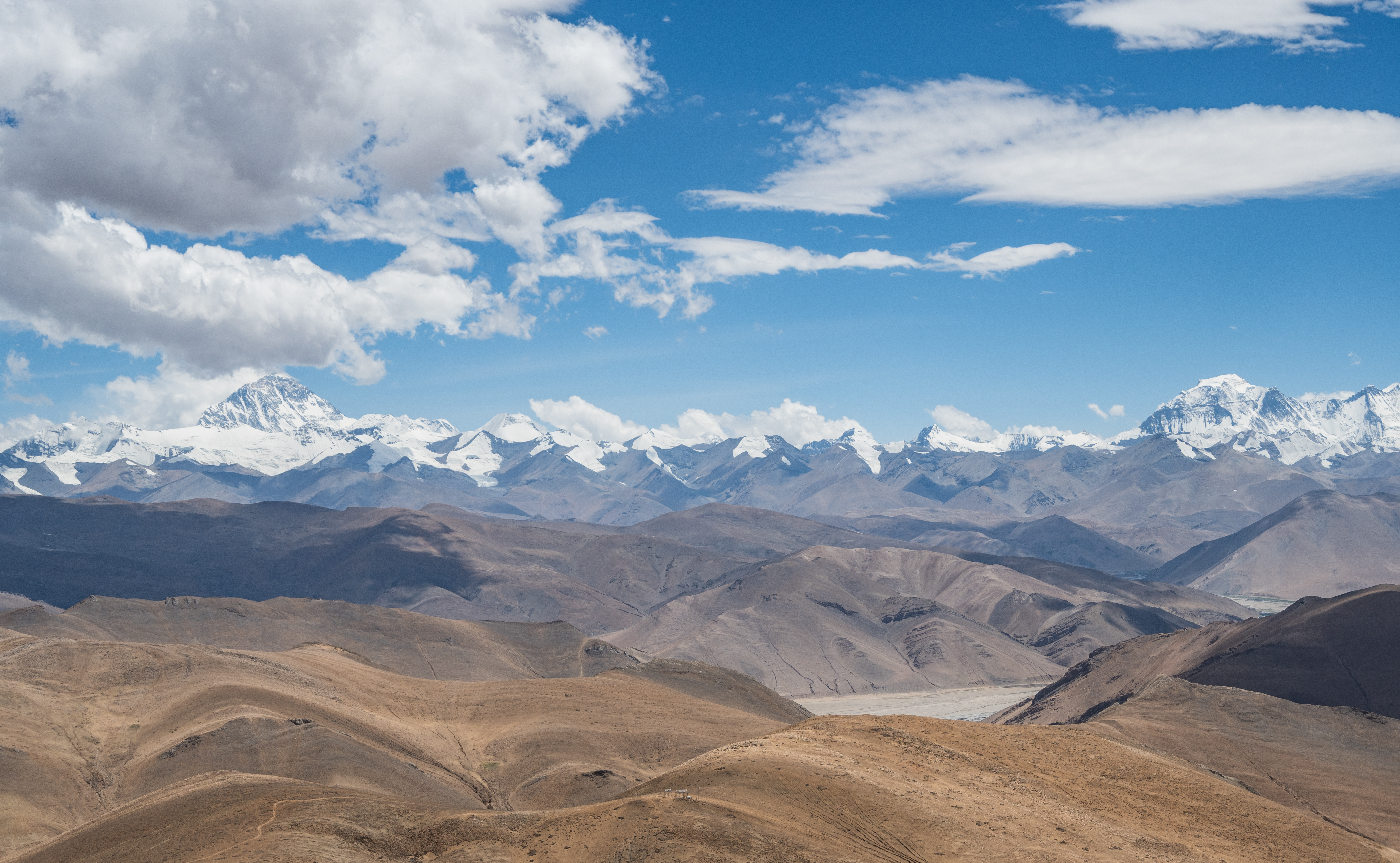 经过珠峰108拐后,到了一个观景台,在这里,我们看到了5座海拔8000米以上的山峰:珠穆朗玛峰、洛子峰、马卡鲁峰、卓奥友峰以及希夏邦马峰。太!壮!观!了!我问同车的爽姐想不想爬珠峰,她说这辈子还真可以试试哈哈哈~