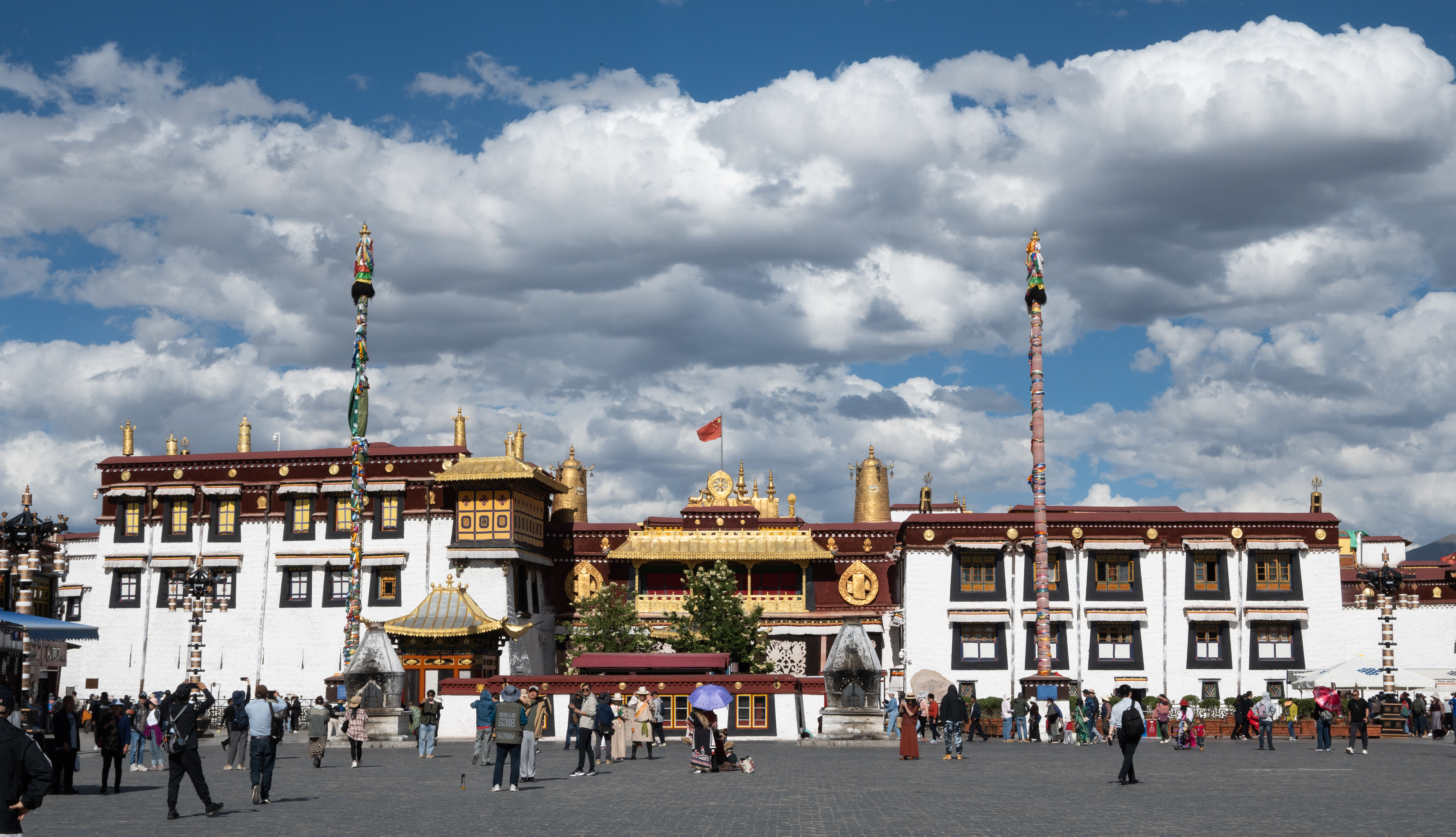 好好睡了一觉后,我和FY去吃了酒店附近的山东饺子馆,很久没有吃过这么香的东西了。然后去喝了布达拉宫边上的霸王茶姬,接着就去参观布达拉宫了。红山上的布达拉宫,以及罗布林卡曾是西藏的政教统治者达赖喇嘛的住所,里面有大量的历史文物,不过很多都看不到,游客参观的线路只是很小一部分,而且门票收费巨贵,我们为了省钱选了二号路线,100块的门票在室内二十多分钟就结束了。其中令我最震撼的是耗费3721公斤黄金打造出来的五世达赖灵塔(墓葬),明显比其他喇嘛的大一圈,也从另一方面反映出当时对普通民众的盘剥。抛开这些历史问题,单从建筑设计上来说,布达拉宫还是非常壮观的。