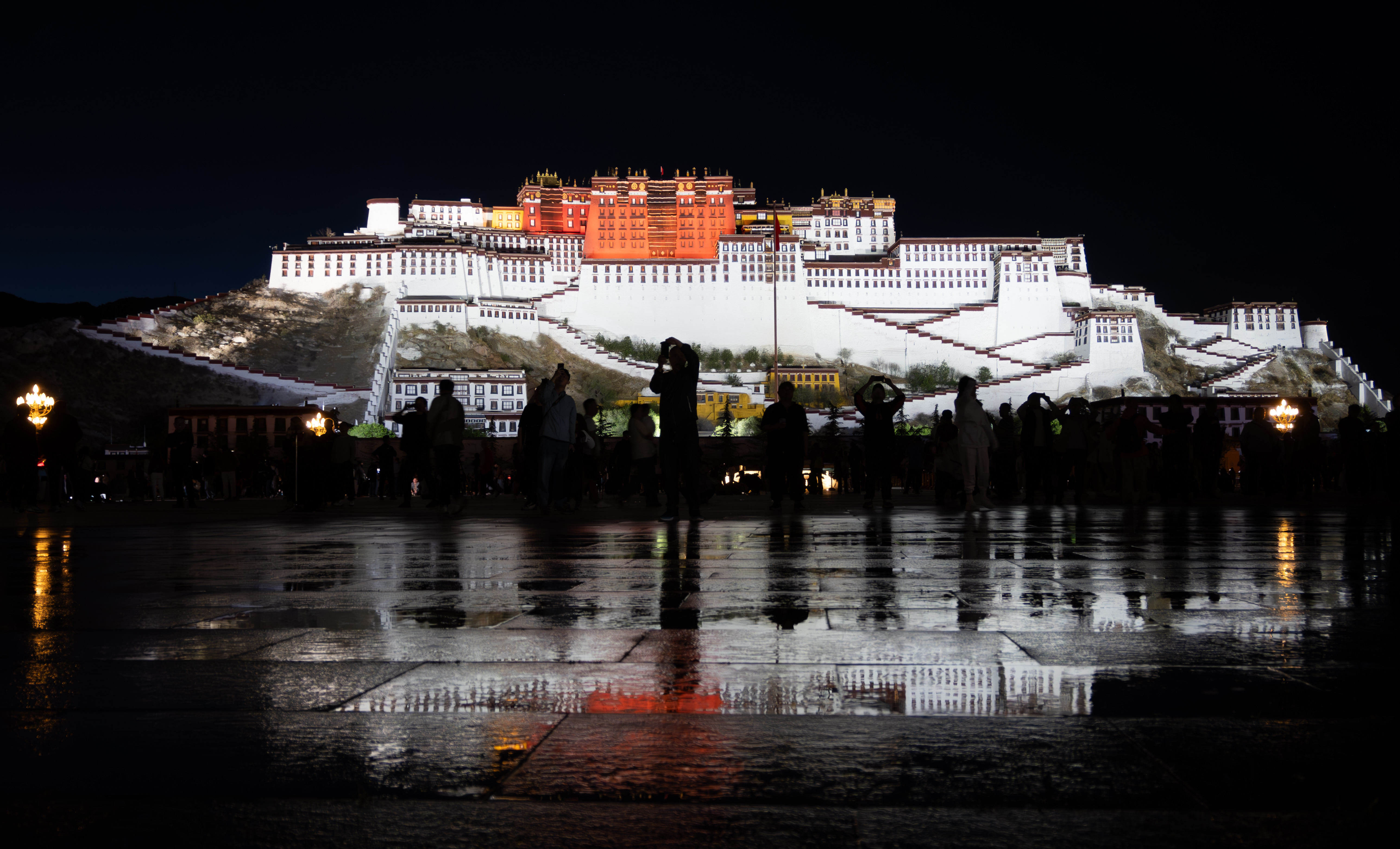 到布达拉宫的时候,已经是八点多了,然而拉萨的上空依然太阳高悬。我们一直等到九点多天才黑,就是为了一睹夜晚的布达拉宫。