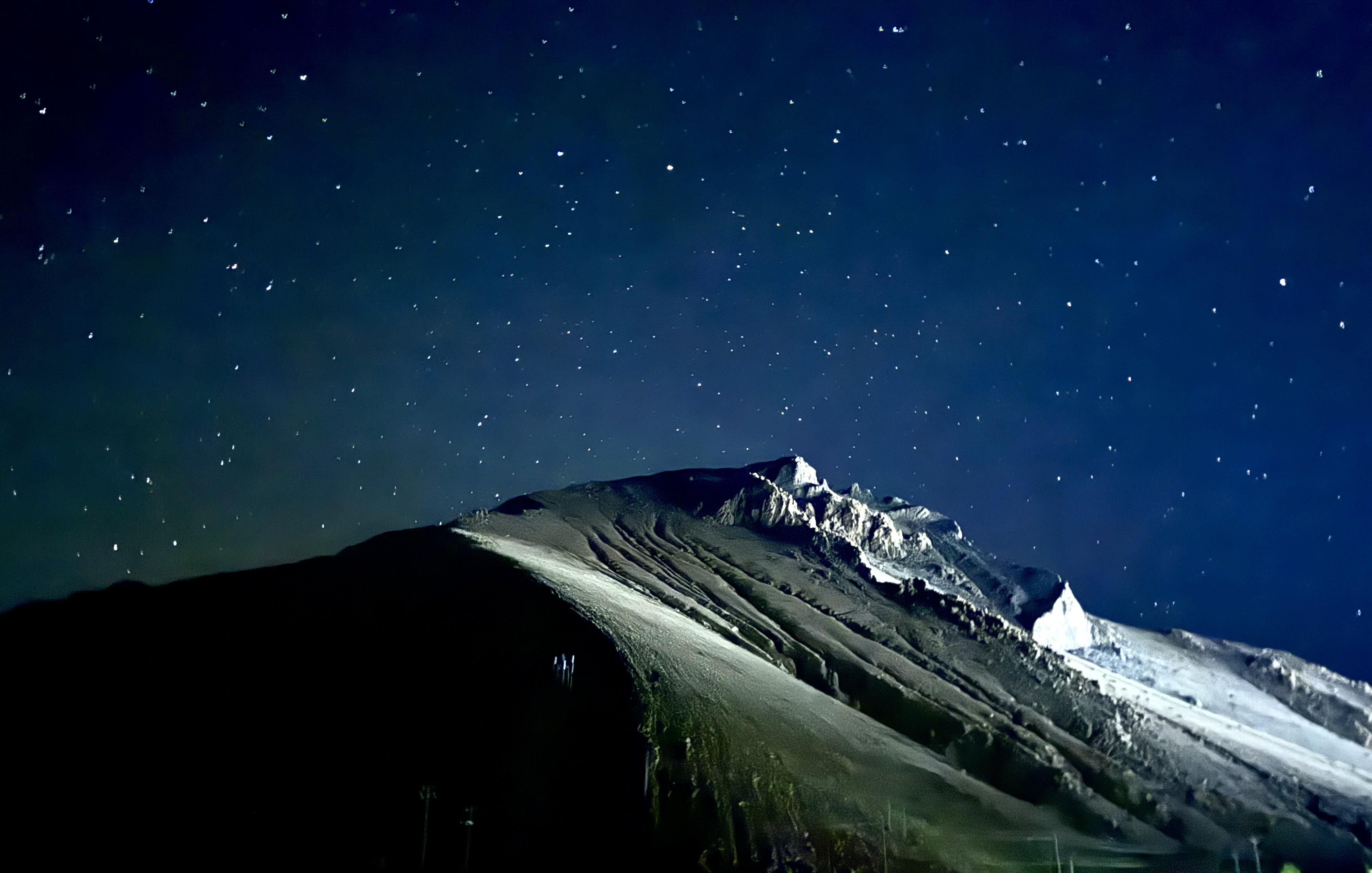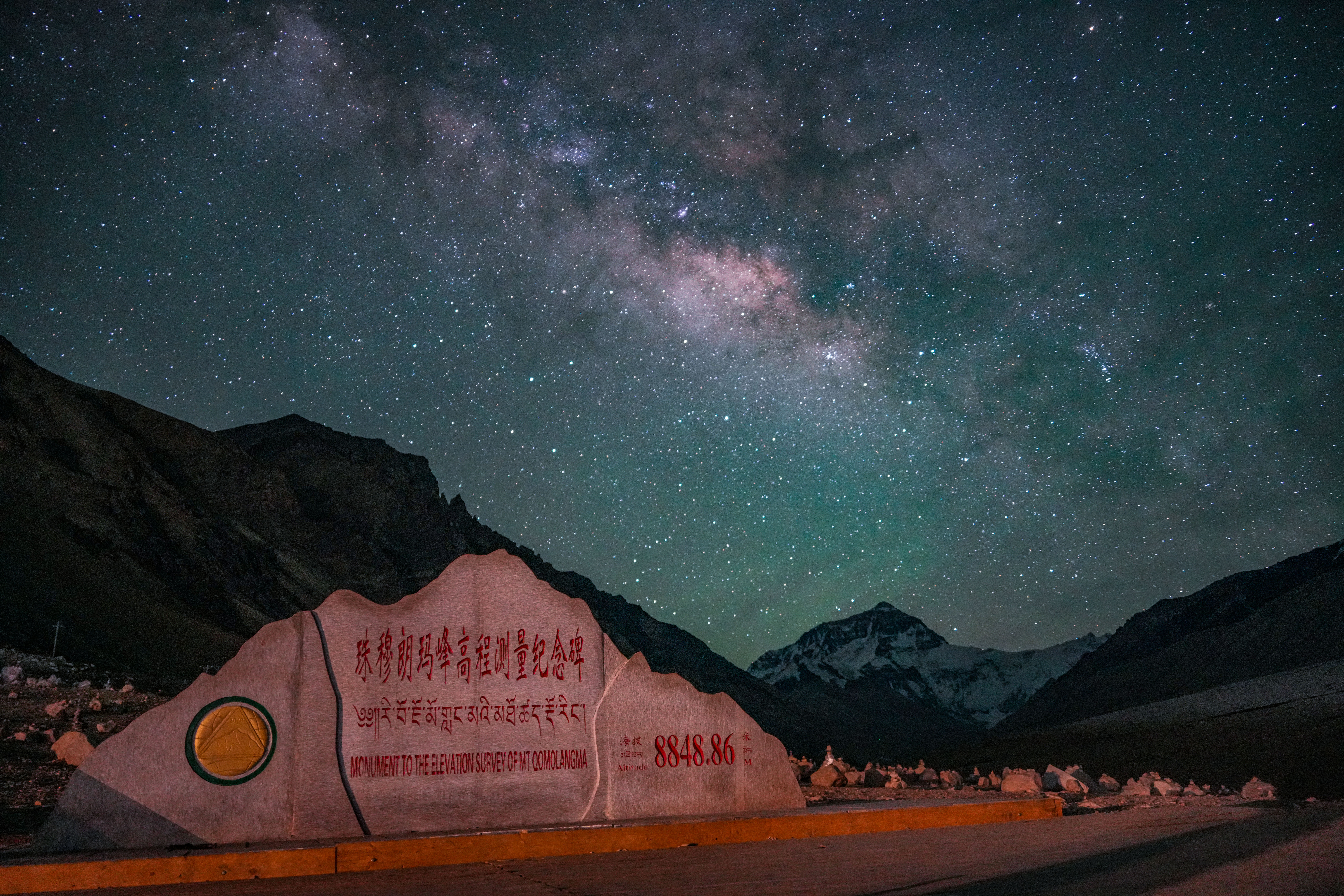 拍完照,我们准备乘环保车到山腰处的扎西宗乡入住,路上遇到一个摄影师大哥,向我们展示他拍的日照金山和珠峰银河,这位大哥一个月上了三次珠峰,脸都快黑成藏族了,感觉就像《白日梦想家》里的摄影师尚恩照进了现实,下图就是这位大哥当晚的成果,太震撼了!