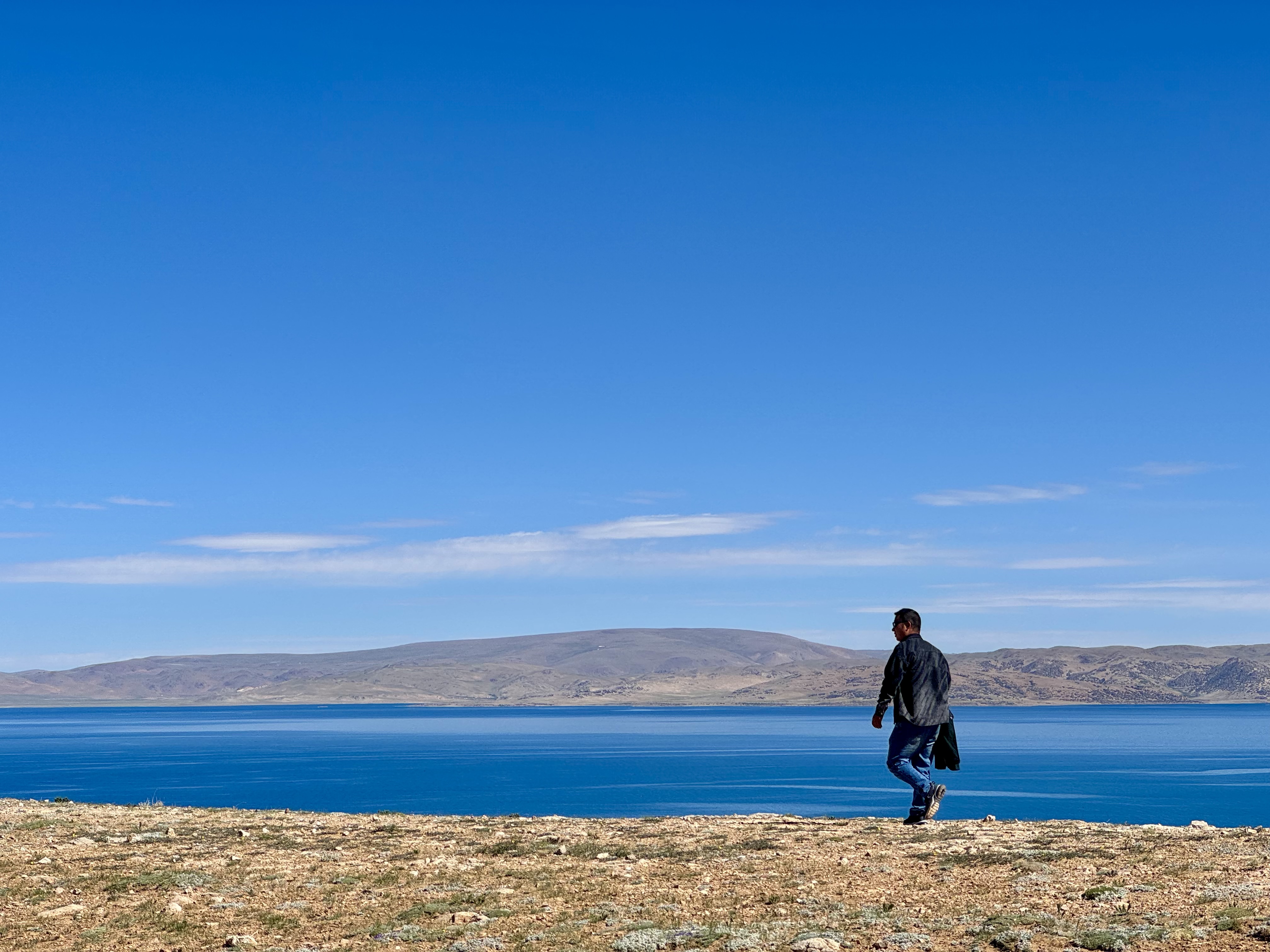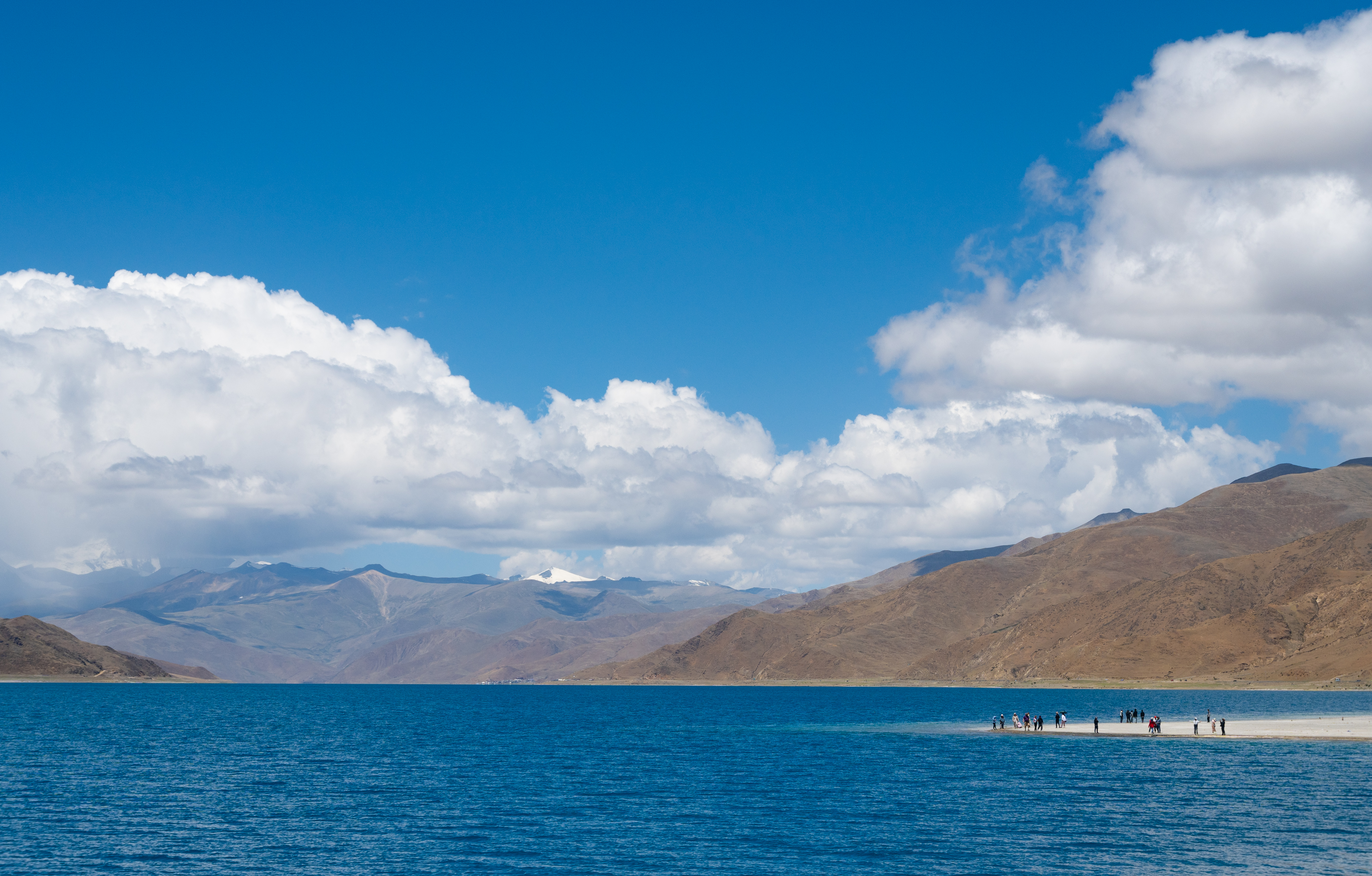 经过一段拥堵的公路,我们到了西藏的三大圣湖之一:羊卓雍措,见到的第一面,我们全车了都叫了出来,汪师傅让我们喊了句国粹:“卧槽!” 太蓝了!从未见过的蓝,难以置信的深蓝!太美了!