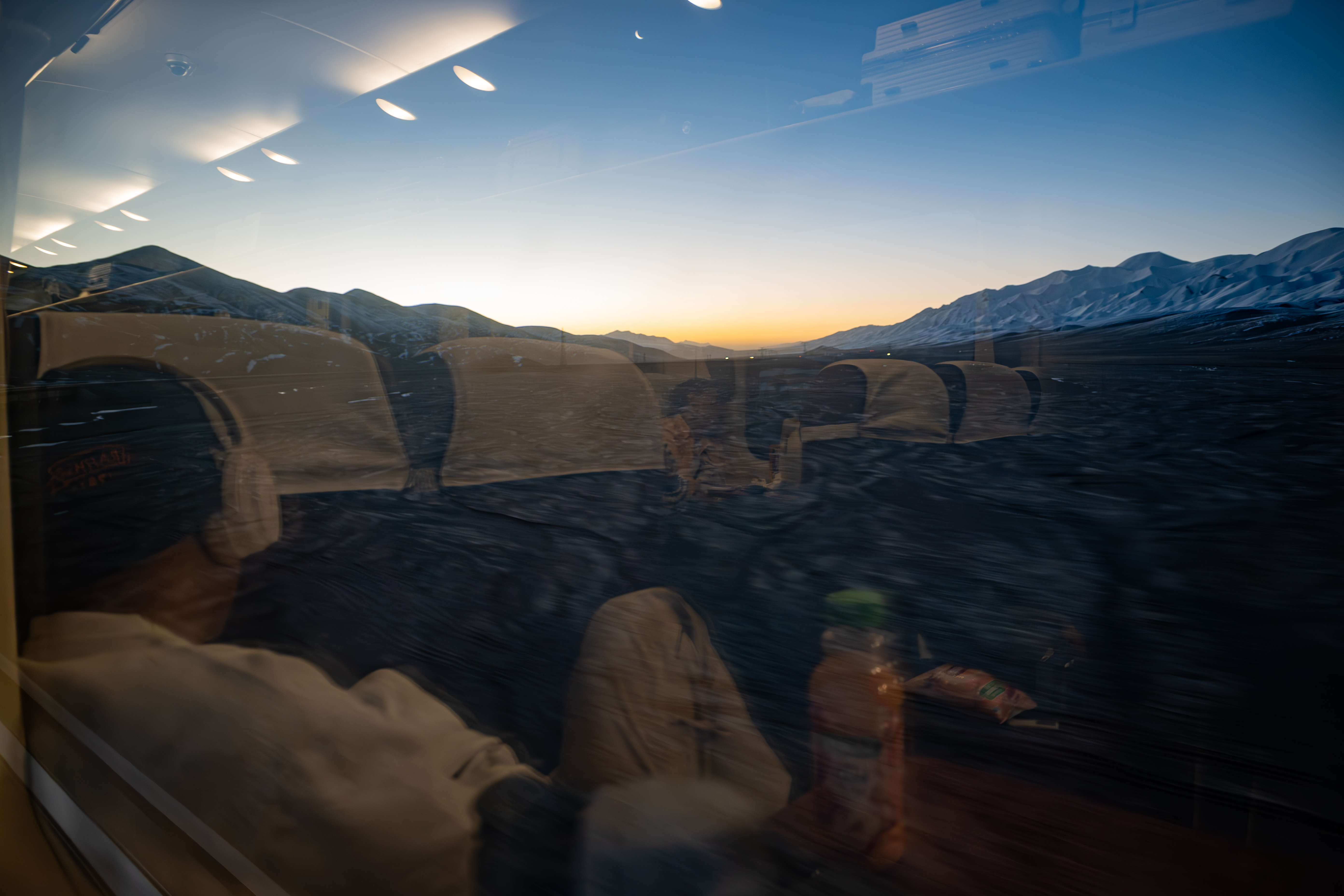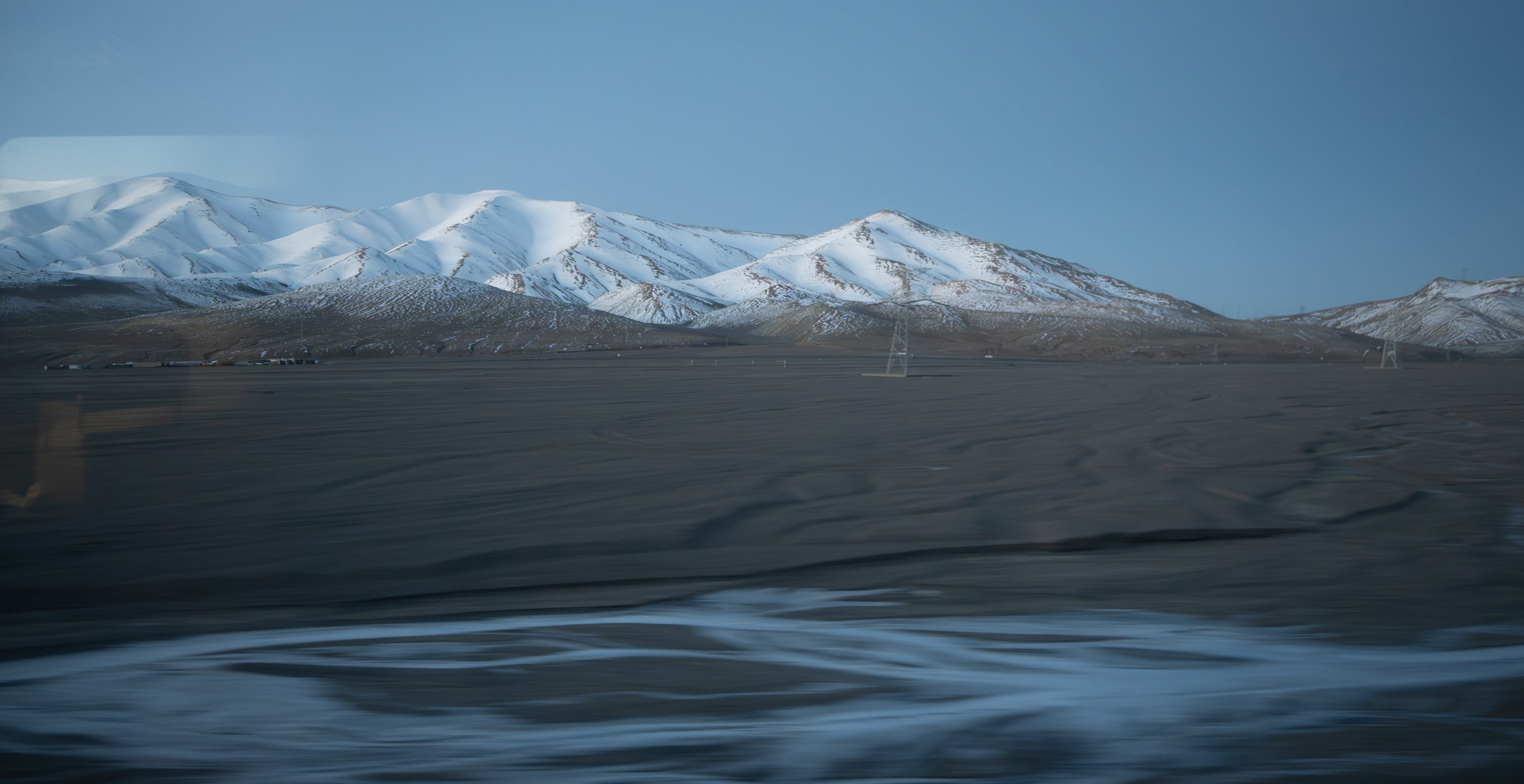 刚上车的时候是无比兴奋的,心心念念的旅途就要出发了,我们又是合照,又是擦玻璃。然而当夜幕降临,整个人就开始坐立难安,以前从来没有坐过这么久的硬座,无论换什么姿势都不舒服,后面车厢的人不多,可以占一整排躺下,但也难受,最后还是趴在充气枕上半睡半醒坐了一宿,脚边的暖气热得发烫,供氧口呼呼作响…正当精力慢慢消耗殆尽时,天蒙蒙亮了,惺忪的睡眼迷迷糊糊得看见了雪山,是雪山!第一次亲眼见到了雪山!立刻跑到后面拍醒了FY,开始一顿狂拍,这一刻突然觉得一夜的痛苦都是值得的。