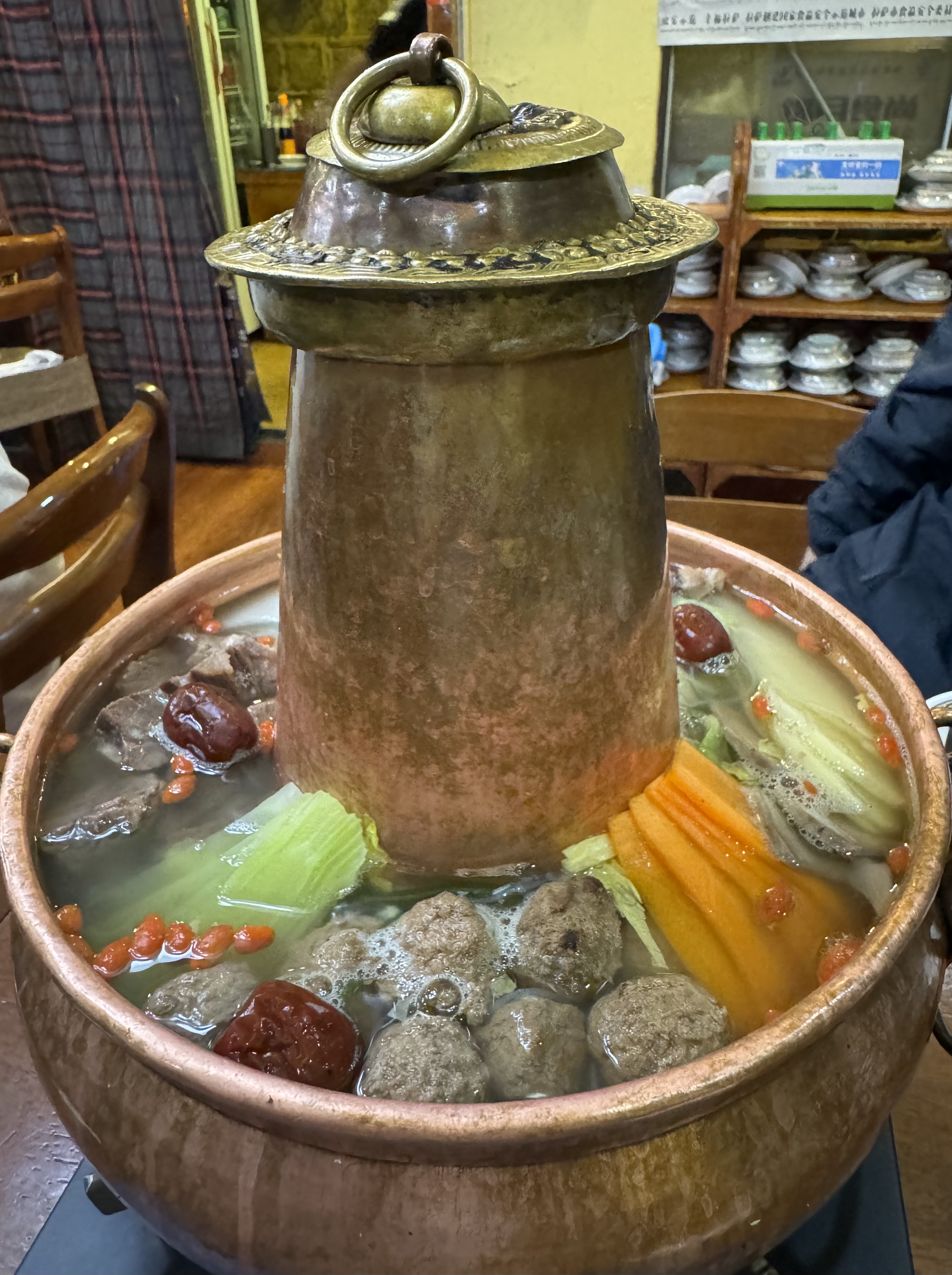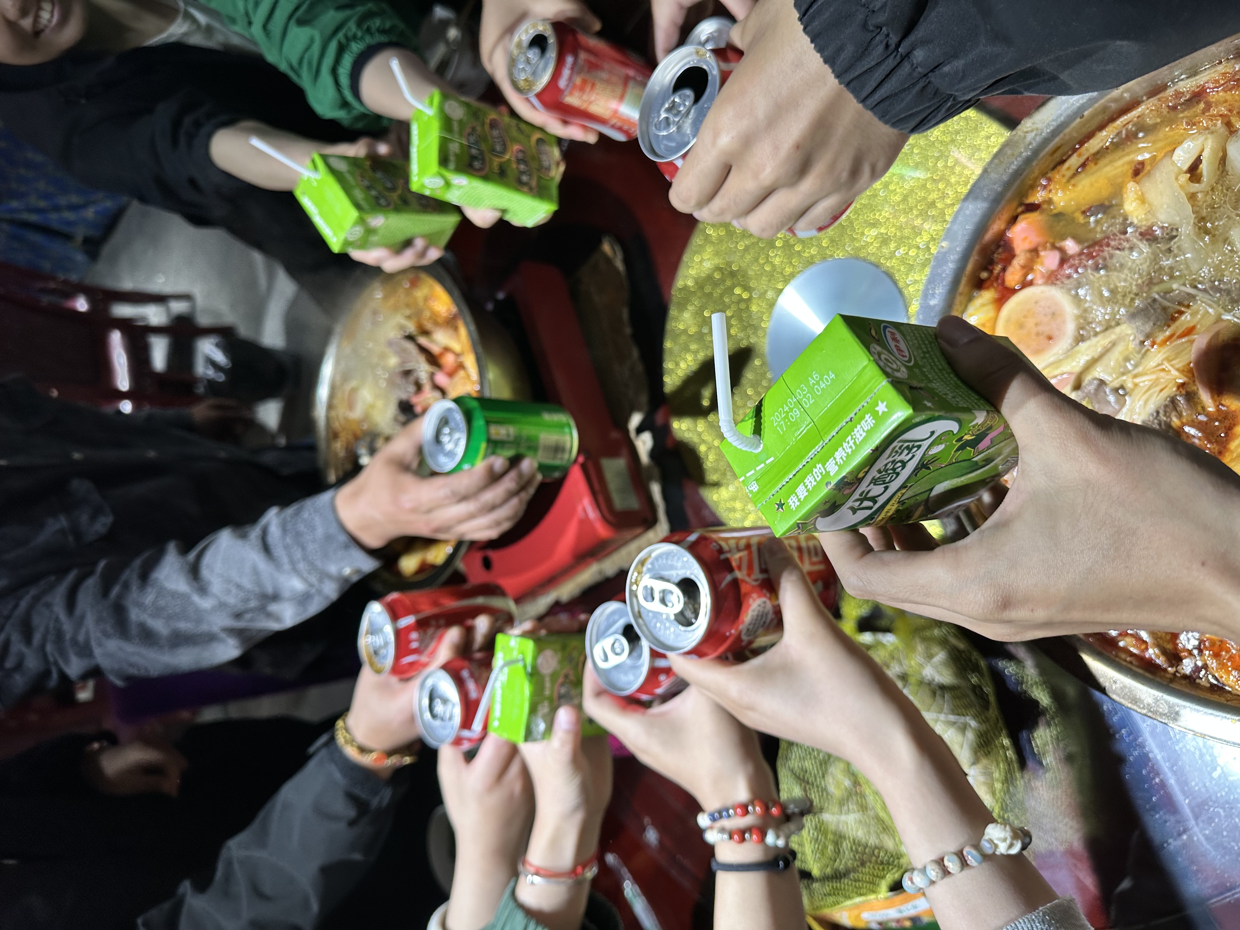 放下行李,第一件事就是用美团外卖点了3瓶氧气罐,开始狂吸。晚上出门吃了第一顿牦牛火锅,很难说好吃,唯一不错的是特制藏族酱料,不过氛围感很好,有藏族小伙唱歌,还给我们戴哈达。后来经司机汪师傅口中得知,我们游客吃的牦牛火锅基本都是假的…回去的路上,高反越来越严重,头痛欲裂,真的就像有人在挠你的脑浆,空气也是可以感知的干燥😭一边吸着氧,一边慢慢往回走,到了酒店实在脏得忍不住,没听劝还是洗澡洗头了。