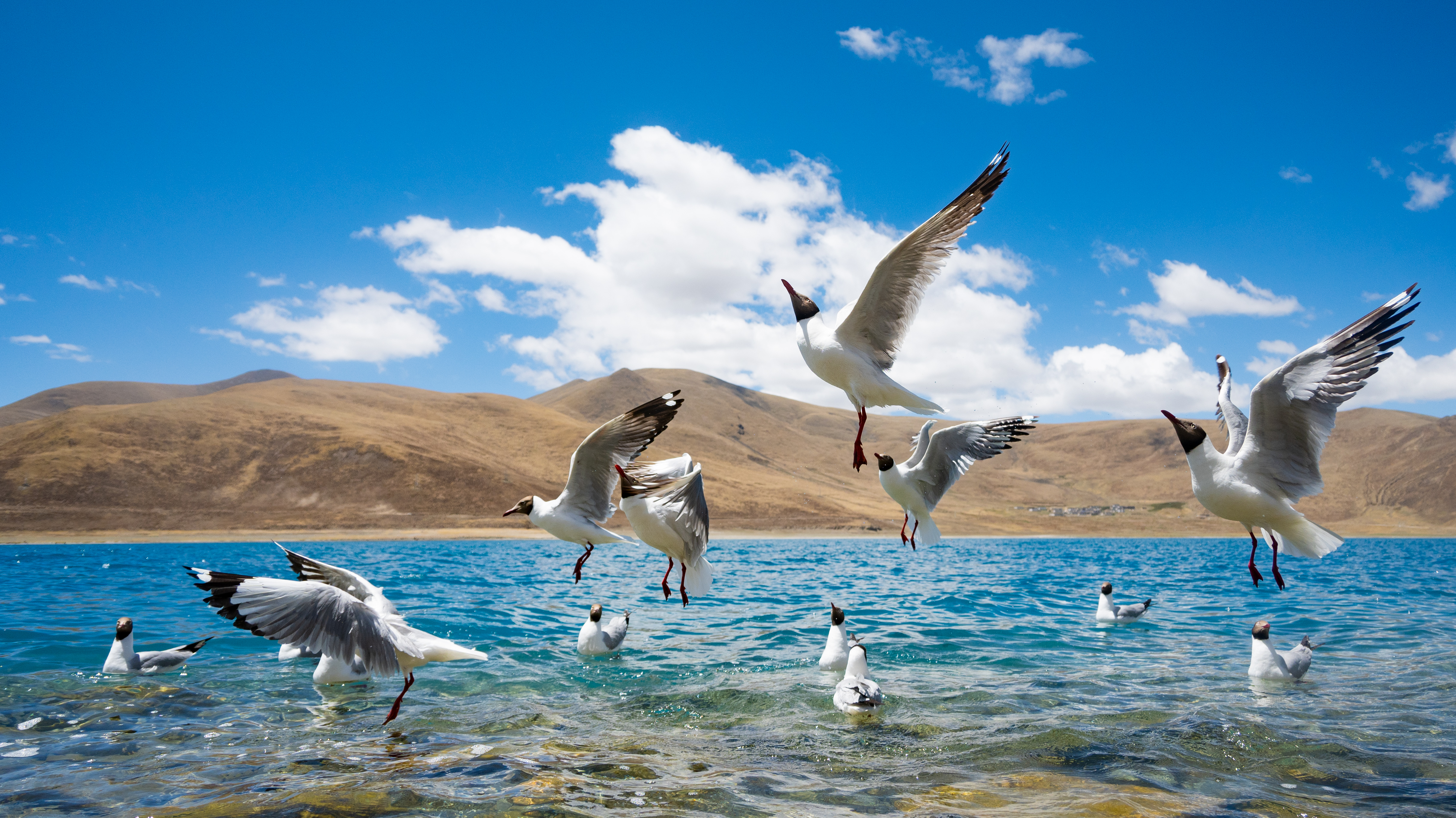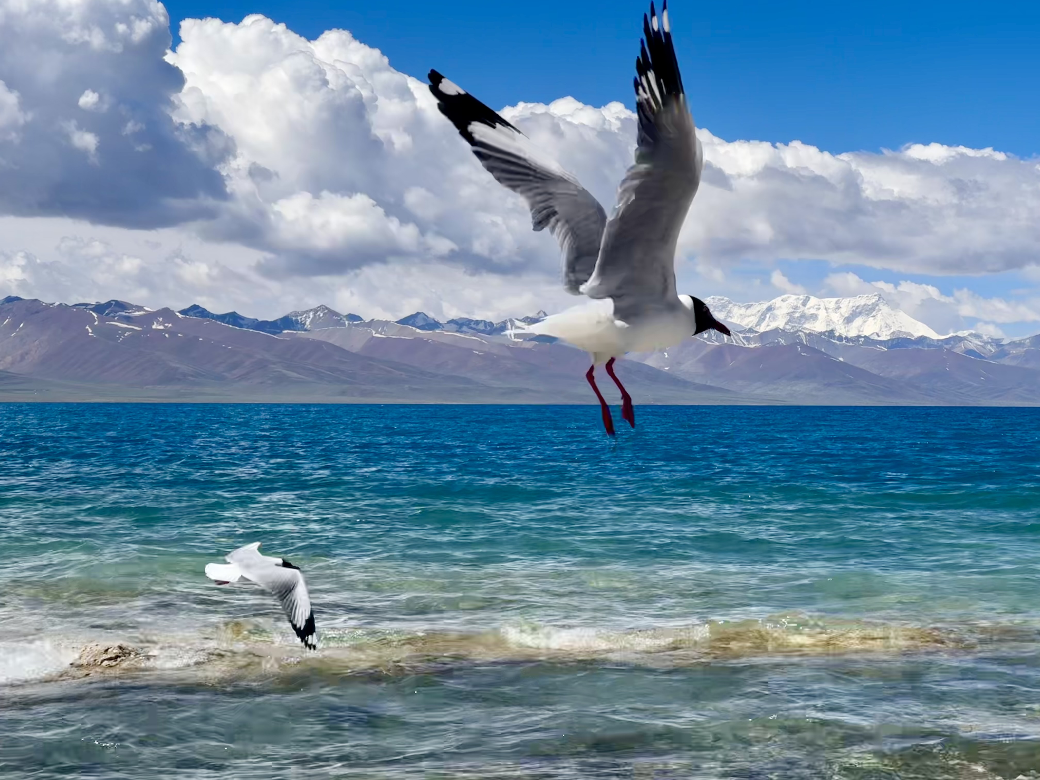 等到了另一个观景台,看到很多海鸥,在羊湖找到了打鸟的乐趣。太!美!啦!