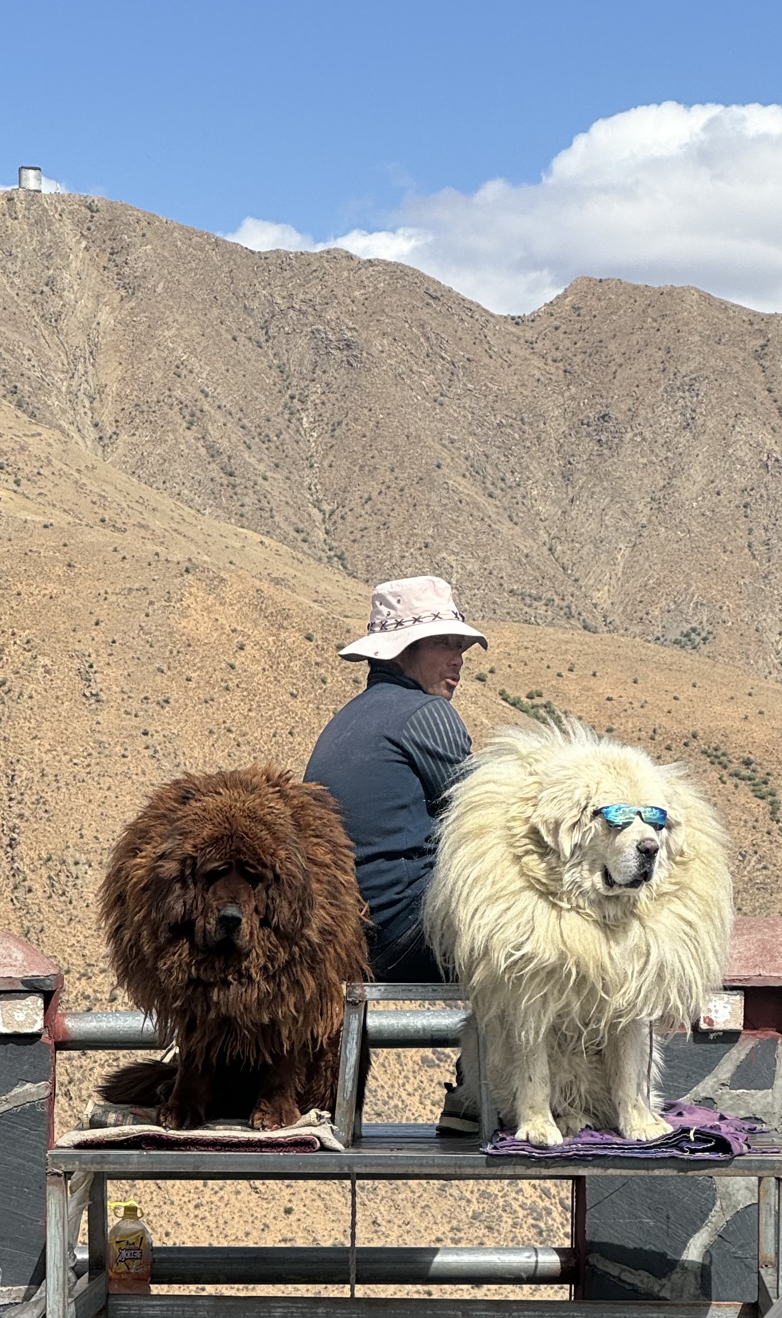 吃完生命维持早餐,我们继续驱车,经过一座座大山边凿出来的盘山公路,在一个观景台看到了藏獒、小羊羔,以及穿着漂亮的牦牛,他们都被藏民拴着,作为游客拍照打卡收费的工具,其实看着是有些可怜的。我们到西藏寻找自由,它们失去自由。